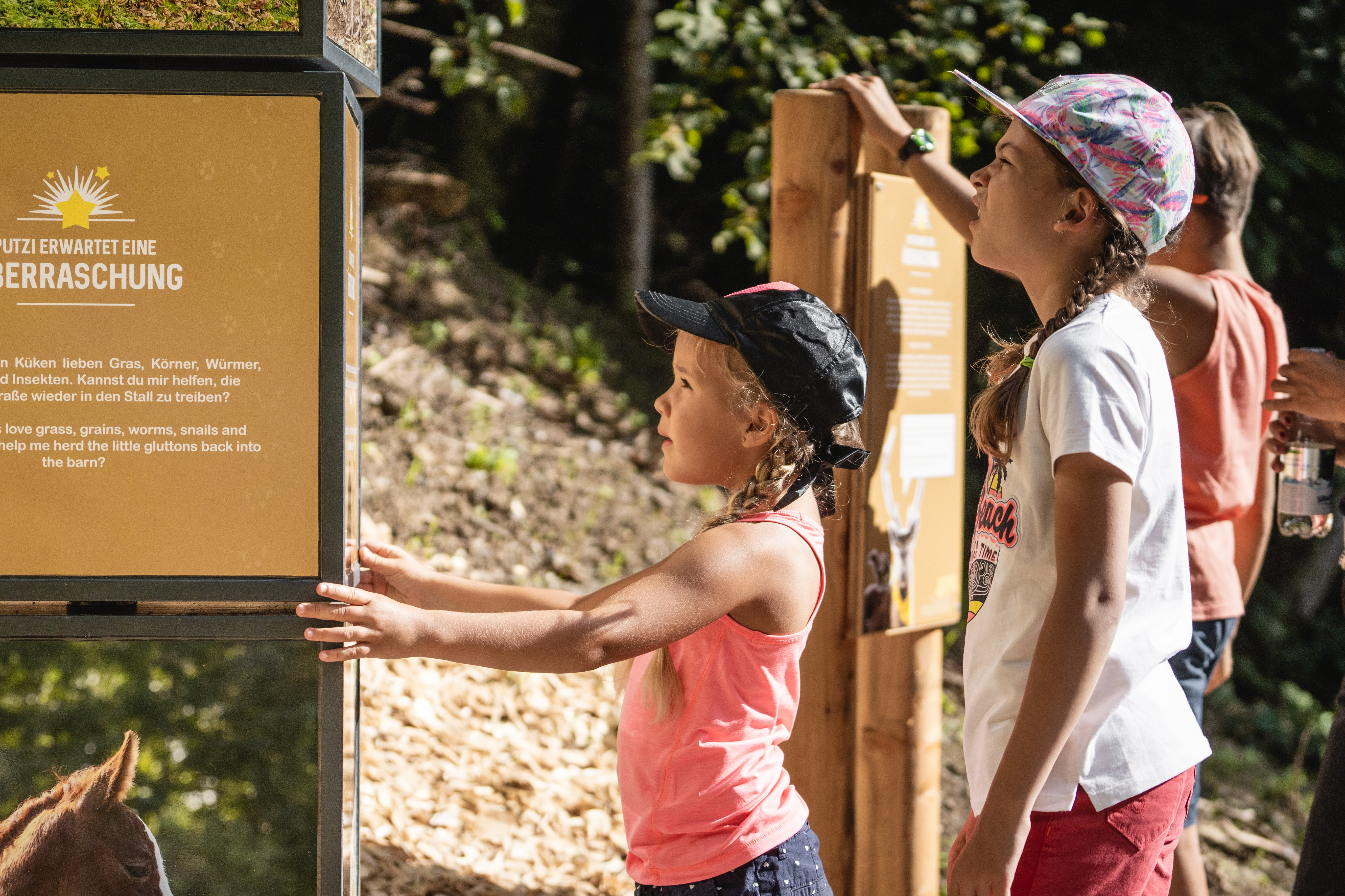 On the Zillertaler Höhenstraße, the Hubertus Wildlife Trail takes young and old on a fascinating journey into the world of native Alpine animals. This picturesque, wide gravelled path through alpine meadows offers an unforgettable nature experience for the whole family with its numerous play and learning stations, picnic areas and relaxation areas. At eight interactive stations, visitors encounter native wild animals such as hares, foxes, deer and marmots, complemented by playful knowledge transfer and activities such as balancing exercises and animal tracking. Benches and wooden loungers invite you to take a break, while a children's playground, a petting zoo at the Kaltenbacher ski hut (Murmelland) and a panoramic viewing platform round off the offer. The trail is easily accessible, starting either at local huts or the Hubertus Chapel, and also offers refreshments and refreshment stops at the Kaltenbacher Skihütte, the Zirmstadl and the Platzlalm.